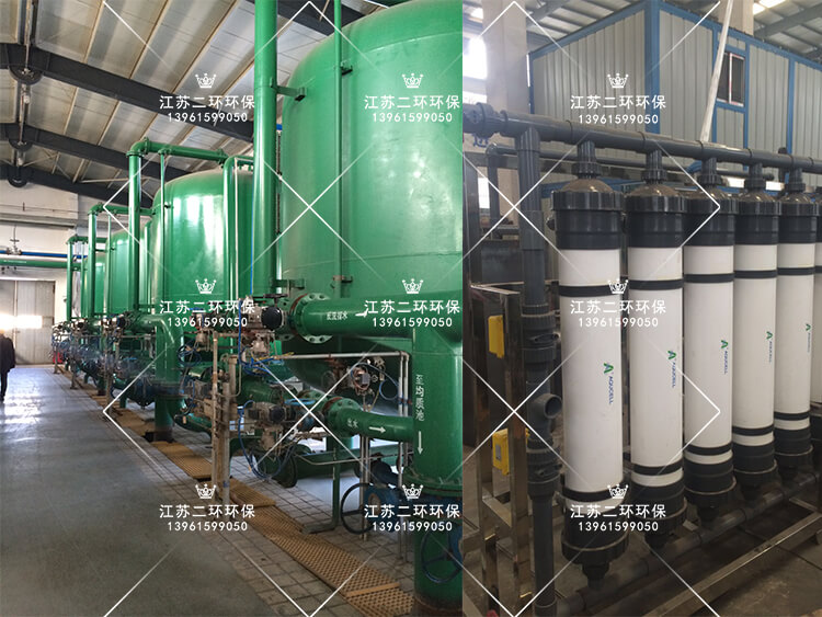 由於處理中水含膠體含量較高,為減少後級反滲透運行負載,增加超濾裝置,超濾是一種加壓膜分離技術,即在一定的壓力下,使小分子溶質和溶劑穿過一定孔徑的特製的薄膜,而使大分子溶質不能透過,留在膜的一邊,從而使大分子物質得到了部分的純化。